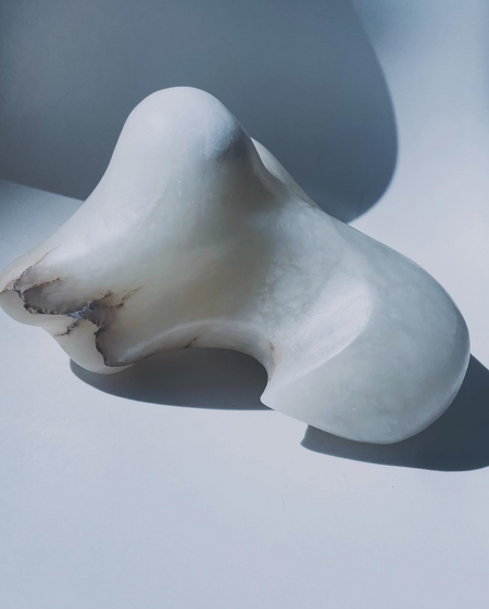 This sculpture showcases the harmonious balance between solidity and emptiness. The smooth, undulating forms are reminiscent of organic shapes, while the slight hole offers a glimpse into the internal world of the stone, creating a dialogue between the physical and the metaphysical.