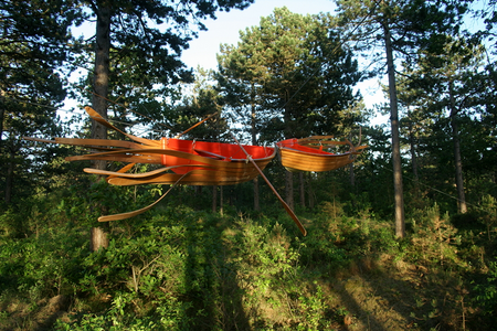 Otbo velo. A boat as a symbol, you sail towards your future, and leave your history behind you, or you leave the past behind you and in the boat it is always the present, the now. What if I were to chop the boat in half, and attach the former front and back end together; then in the middle of the boat(assuming it still floats), I have the front and back, past and future all together in the âpresentâ. This is more in line with reality as we generally occupy ourselves with future plans more so than past eventsâŚ.all the while, the present is taking place all around us.