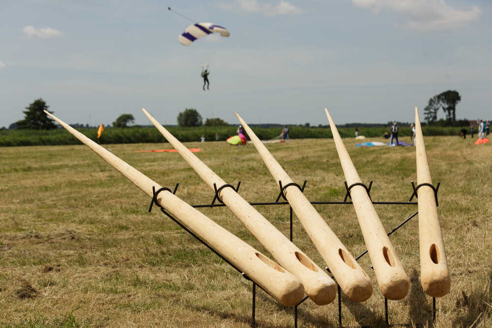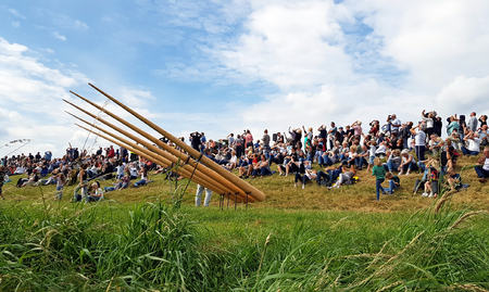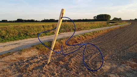 With his artwork, Rooijakkers highlights the connection between the defensive structures of the Zuiderwaterlinie by symbolically threading them together with needle and blue thread. The needle and thread can be found on a large scale during De Sprong and the festival, and serve as a beacon along the walking route that links the fortifications. The events require, just as they did 350 years ago, significant involvement from numerous partners. The artwork runs like a blue thread throughout this. The needles that are pierced into the landscape resemble lances and other weaponry. However, needle and thread are not intended for fighting here, but for stitching. The battered landscape, which was split in two by water, is once again whole.