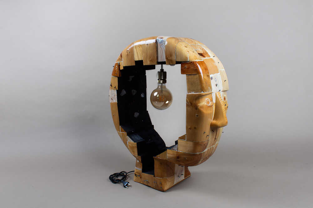 This sculpture is made from recycled pallets and reflects our thoughts and emotions.