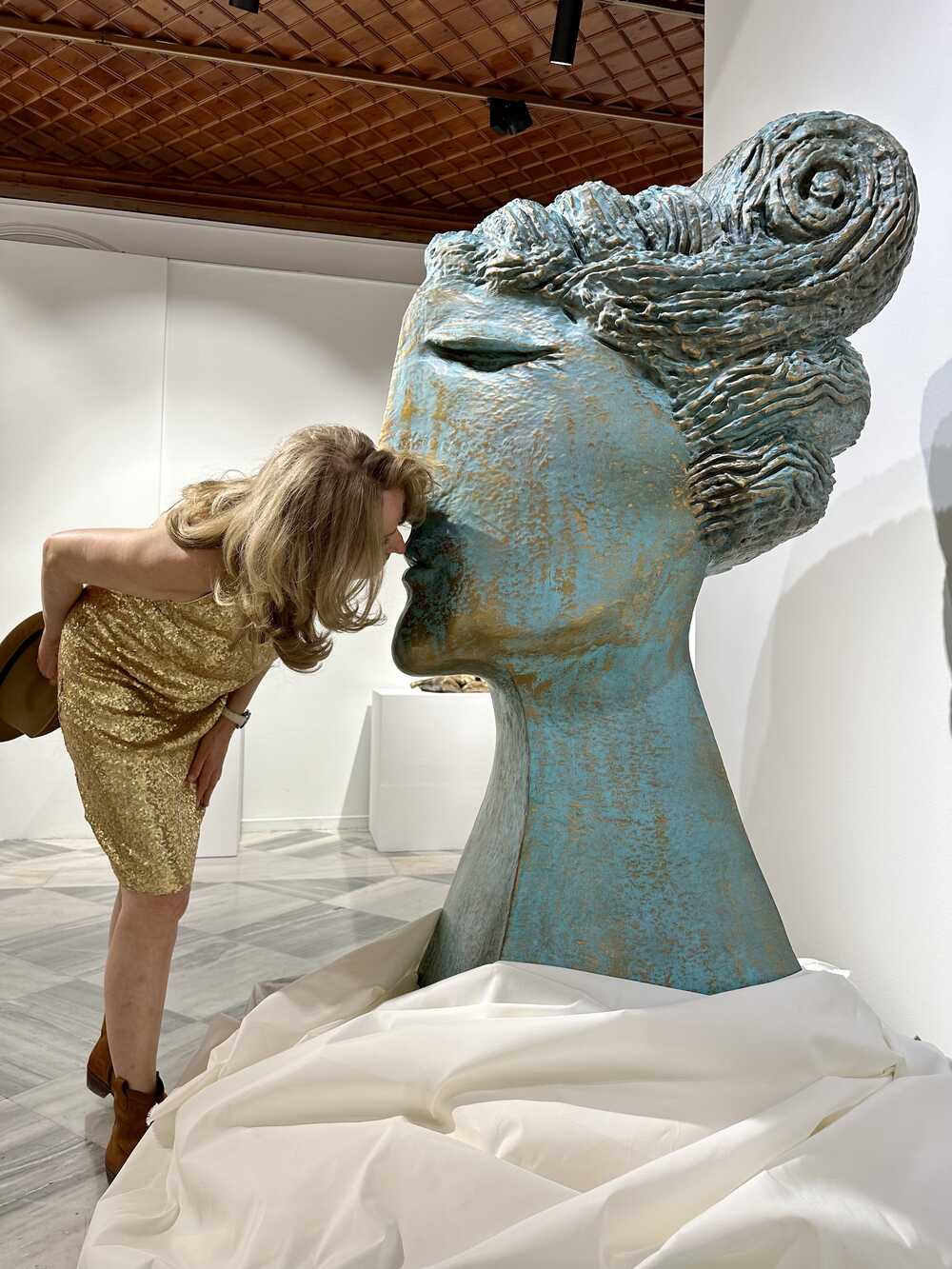 The long necked Taygeta Beta was created in Bronze in 2023 with a turquoise golden patina and was one of the center pieces of the exhibition "Aegean Inspiration" on the Greek island of Hydra in April 2024.Â