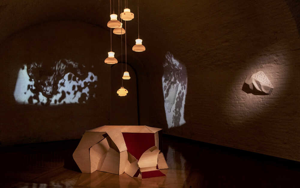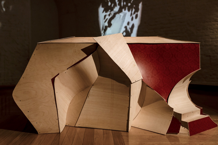 «Alesya has prepared an exhibition-shelter - individual works of the project may refer to childhood associations and memories, but their global goal is to create a safe zone. The artist uses recognizable wallpaper ornaments and ceiling lights as readymade to create a space where you can feel protected. Sculptural objects are home interiors turned inside out, taking on a collective image of urban architecture. The streets, where anything can happen and happens, are opposed to the house, and that is why the artist seeks to endow them with the visual, formal qualities of a house and thereby secure or render them harmless. It is of a prime importance that the art work refers to the events that happened in Belarus in 2020. Protests and violent detentions in response inevitably cause a feeling of anxiety for oneself and for the loved ones - the streets of the city that used to seem safe have lost this quality. You can’t feel protected even at home. The shelter created by the artist, opposed to the hostile outside world, carries this antithesis in its essence. The fragile boundaries of this safe territory continually strive to disappear - artificial light merges with the sun, the pattern on the wallpaper is superimposed on the ornament of the shadows cast by the leaves outside the window. At any moment, someone or something can break into this space of protection and thereby destroy it. The house as a shelter is like a shelter in the unconscious, where the analysand hides from anxieties and pain, but this same shelter paradoxically prevents the struggle and overcoming of these anxieties. Alesya endows the public space with the external qualities of the house, wrapping it with patterns of curtains and filling it with warm lamp light. The attempt to hide in this safe environment is a defense mechanism, a reflex that is triggered in response to an external threat and is reminiscent of a child’s reaction who closes his or her eyes to hide from a terrible monster. But can the shelter save us from the approaching disaster?»