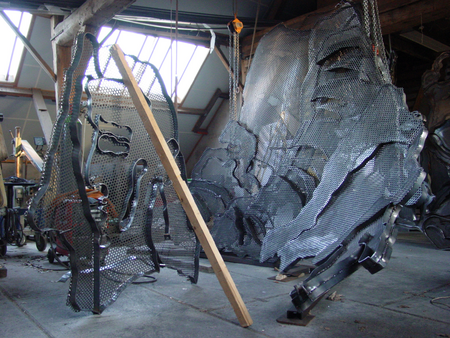 For me growed the idea, Da Vinci mend the painting as a life-cyclus. While I was making the sketches of the definite sculpturegroup, the four groups of three men got names, which globaly expressed what them alliated. So they got titles as : judgement, impotence, care, discussion. They may be the 4 importend items you meet on the road from having til being. The judgement of the youth, the discussion of the adult, the impotence of midlife, the depending of care of the old-age.