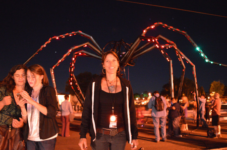 TaranTula comes to life with hundreds of sound activated LED’s strung inside the legs and body that illuminate her from below and can be seen from afar. Her lights change with the sound of music making her a popular visitor at music festivals.