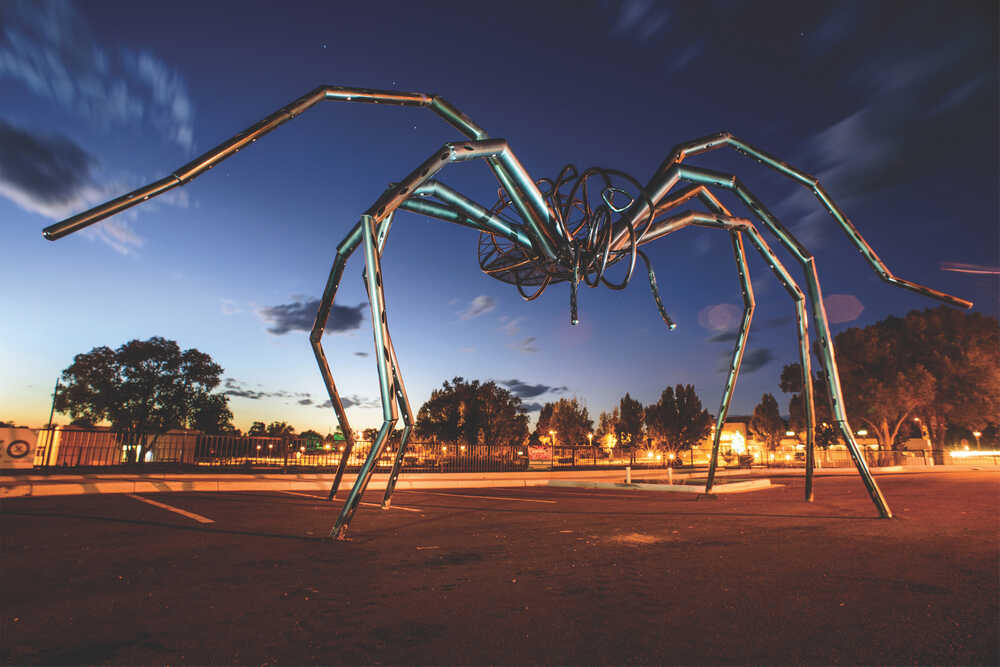 TaranTula is my best interpretation of all that I find beautiful in this arthropod, as well as visualizing this sculpture in an appropriate setting. She is a 16-foot tall steel tarantula, inspired by the exoskeletal components of spiders as well as her native saguarro cactus.