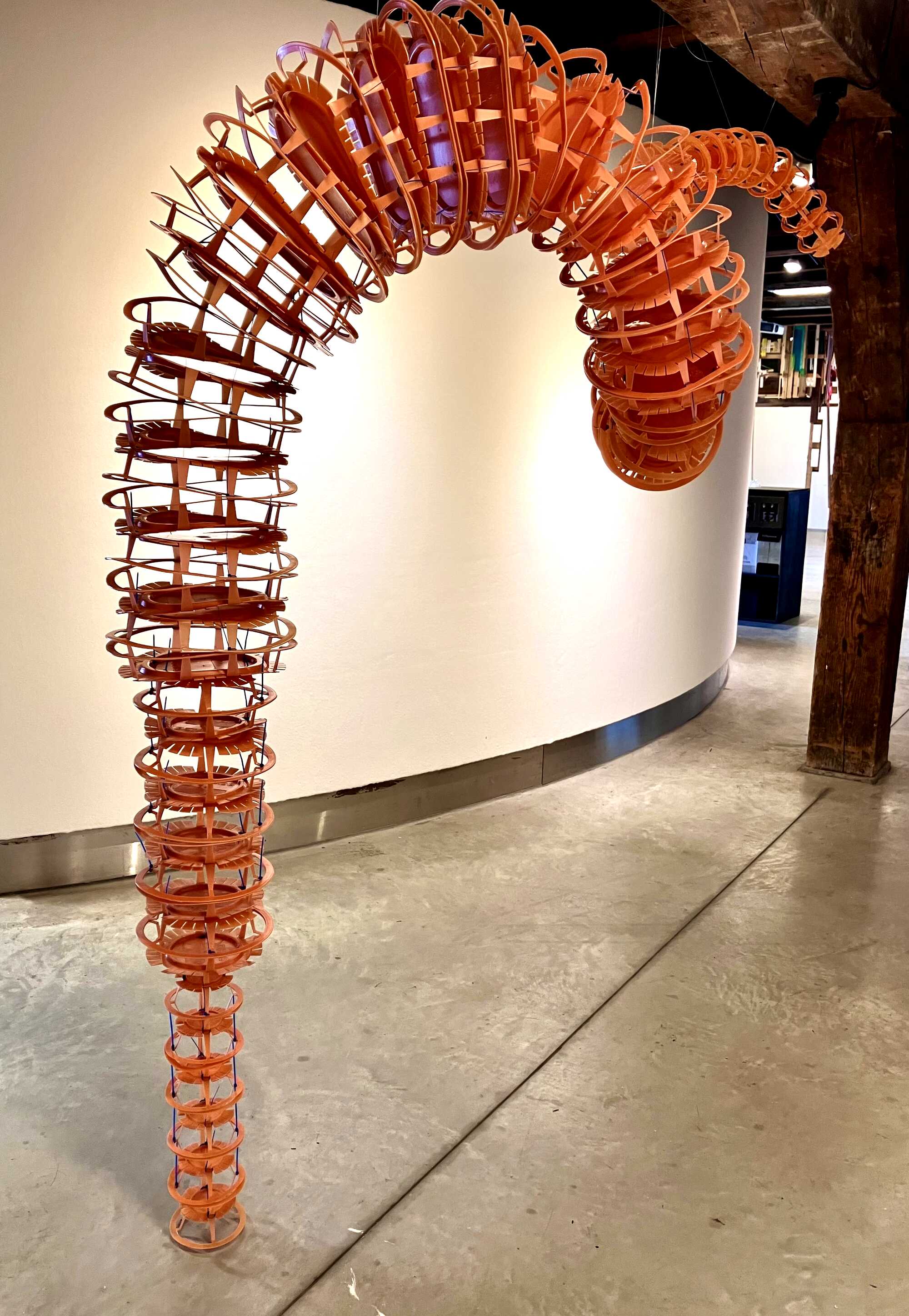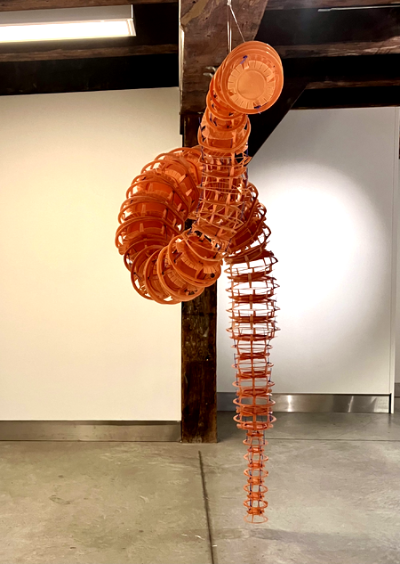 Assembled from 94 orange landfill seals and a few hundred blue tyraps.