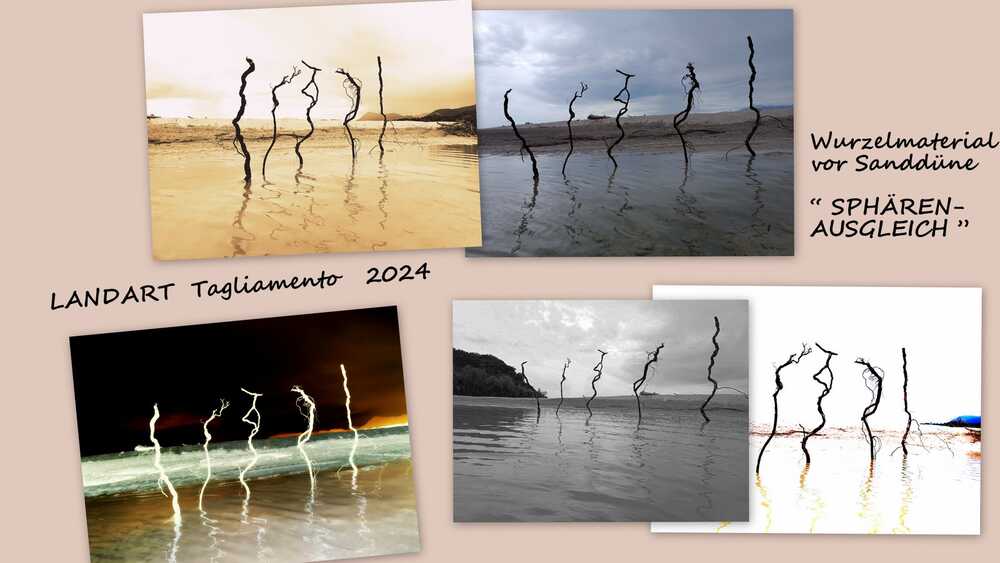 „Sphärenausgleich“ fungiert als temporärer Knotenpunkt im endlosen Kreislauf der Natur. Die Wurzeln, einst lebendige Verbindung zwischen Erde und Baum, werden zu Relikten einer vergangenen Ordnung, doch ihre Anordnung als „Energieableiter“ deutet auf eine metamorphotische Weiterführung: Sie leiten die Kraft des Wassers in den Boden, speisen sie zurück in den Kreislauf. Die Spiegelungen auf dem Wasser – mal chaosmalerisch zerrissen, mal spiegelglatt – symbolisieren die Dualität von Ordnung und Zufall, menschlichem Willen und natürlicher Autonomie.