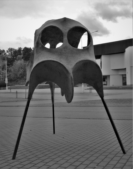 It was the head of this mythological creature or rather its skull, that I decided to depict in my work. As if the monster had already been defeated and all that was left was its memory, a ghostly fossil. But you never know when a basilisk might return. His head, standing on thin legs, is a dreamlike, surreal vision suggesting that the legend is still alive, and one can never be sure in what form it will be reborn the next day (in the form of a new pandemic, a nuclear catastrophe, a war, a meteor, a political turmoil, or a general insanity).