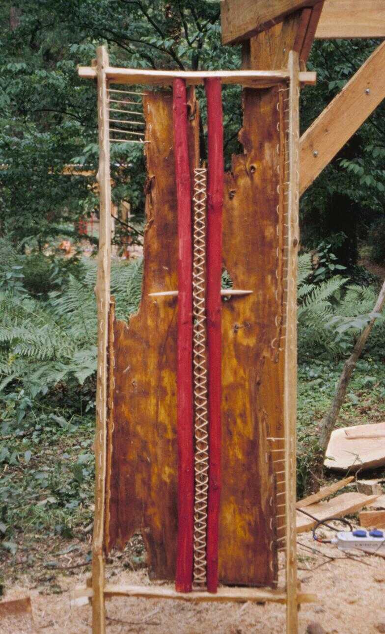 Lärche, Lärchenrinde, Farbe, Rattan; Kettensäge, gebunden