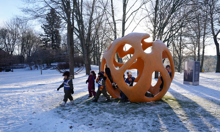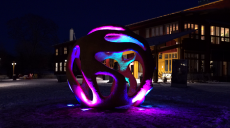 The sculpture is interactive and lets the kids play in an environment built by an audio-visual show inspired by all five elements of nature – including us, the civilization, as the fifth, new one.