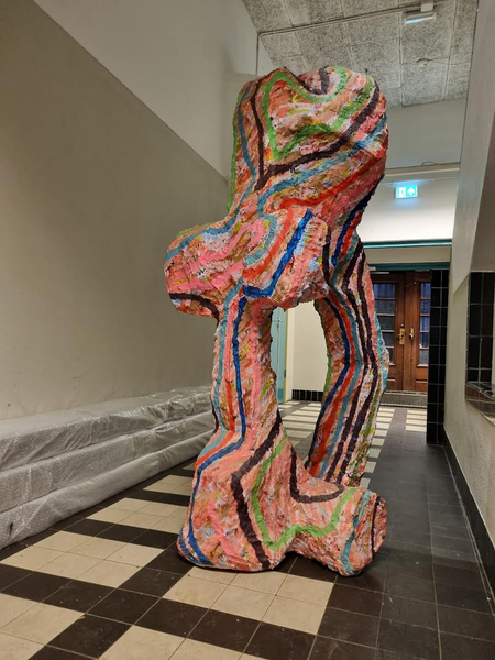 abstract sculpture standing in the way plaster 2,2meters high