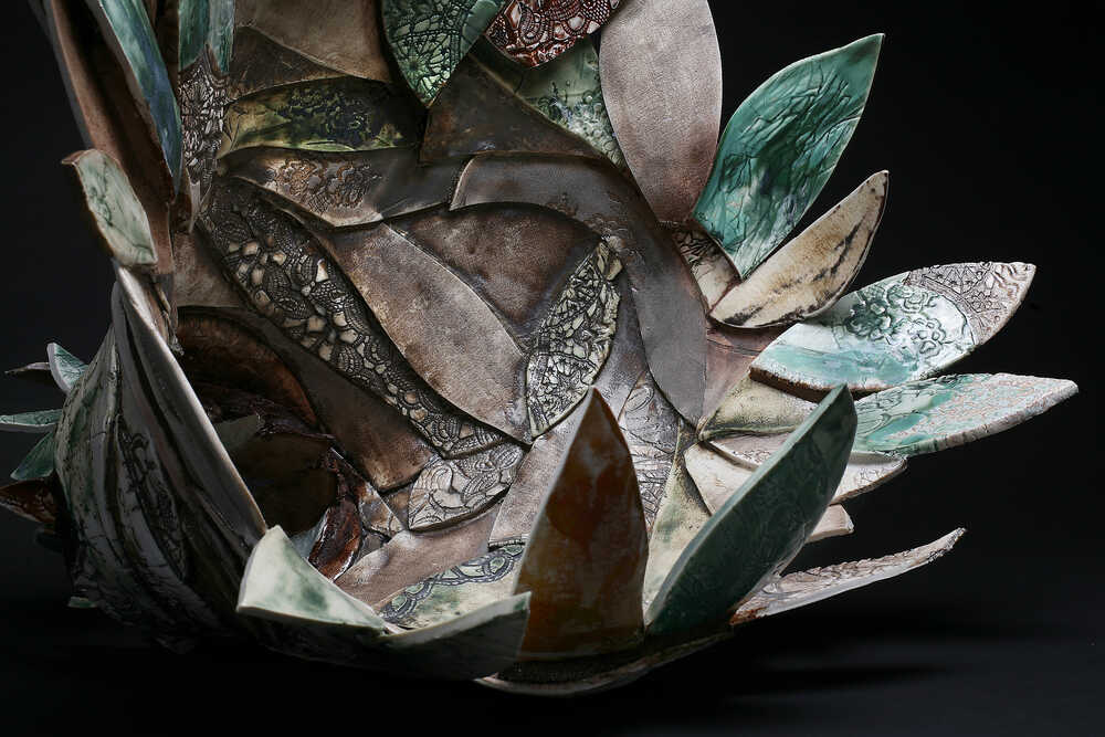Sophisticated object collagesPorcelain built up and fired several timesDecor outside and inside