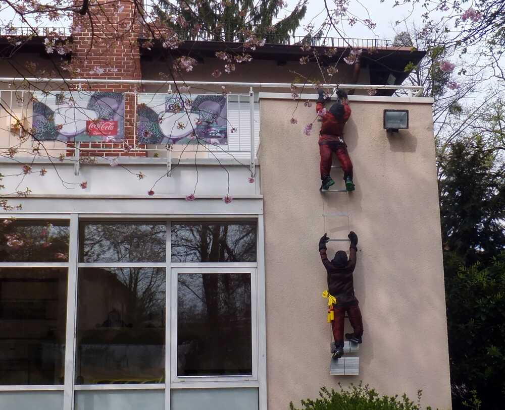 mit einer Übungsdarstellung von zwei GIs, die sich im Einsatz zur Sicherung der Kommandanten-Villa an der Außenwand nach oben arbeiten.