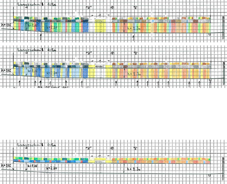 Der Vorschlag sieht vor, eine schmale Personenunterführung (B=3.00m, Hmax=2.30m) von ca. 45m Länge nicht mit Wandbildern, sondern mittels Beleuchtung aufzuwerten, die den Jahreszeiten folgt. Zwei Lichtbänder mit fixen Farbabschnitten ermöglichen durch Überlagerungen und ein Zeitschaltprogramm verschiedene Farbwechsel, die nicht ständig, sondern tageweise ändern.
