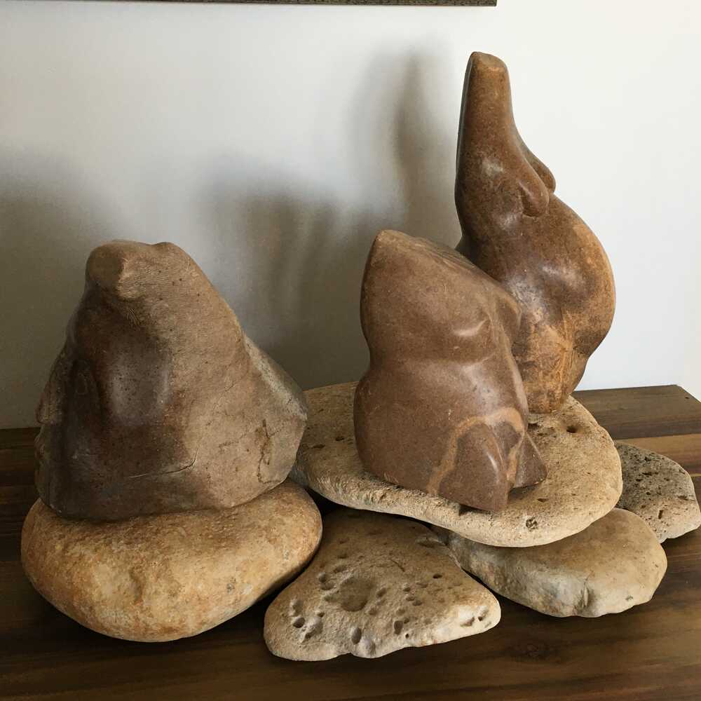 Soapstone, river stones.
