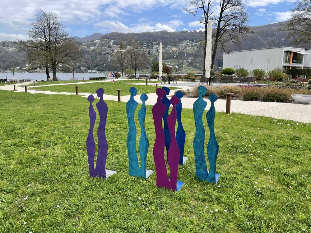 Couples that may move with the wind - made of thin enough Iron Sheet to just allow them to tremble and sway - my wish to make art that is not static. Each figure is painted with acrylic to choose to be seen from front or back , with a warm and a cold side - summer and winter, allowing for mood changes.