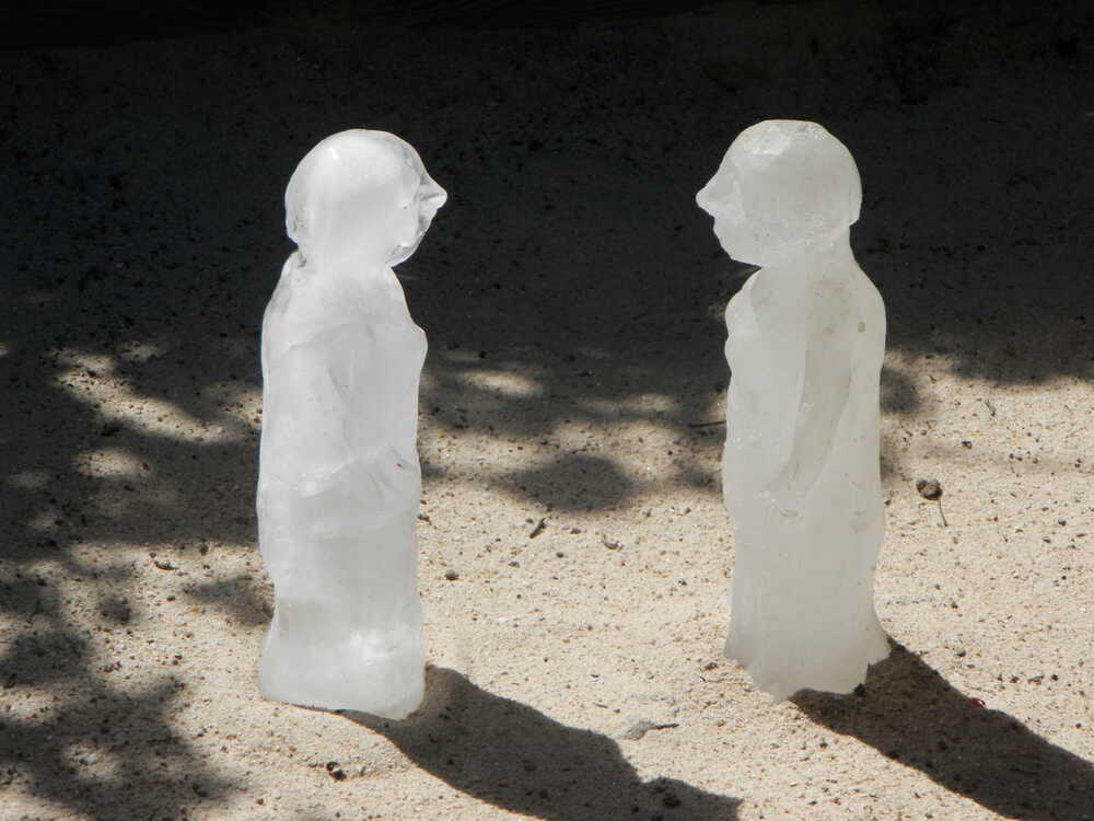 Melting truth I setzt sich mit dem Klimawandel auseinander. Während die einen tun als ob es Ihn nicht gäbe, spüren die anderen die Folgen. Dies wird in einem kleinen Video gezeigt. Die eine Skulptur ist aus Glas. Die andere Skulptur ist aus Eis. Hier arbeite ich mit zwei Materialien die zu Beginn ein ähnliches Aussehen haben. Die beiden Skulpturen wurde von mir angefertigt.