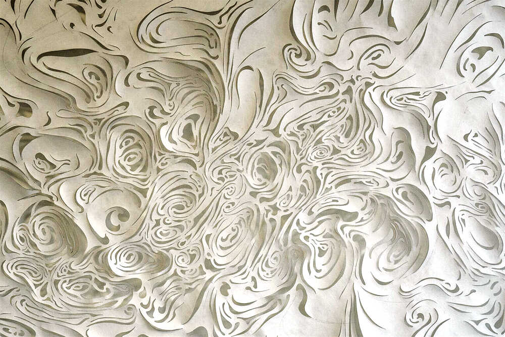 A drawing of movement in water, translated in a hand-cut drawing.