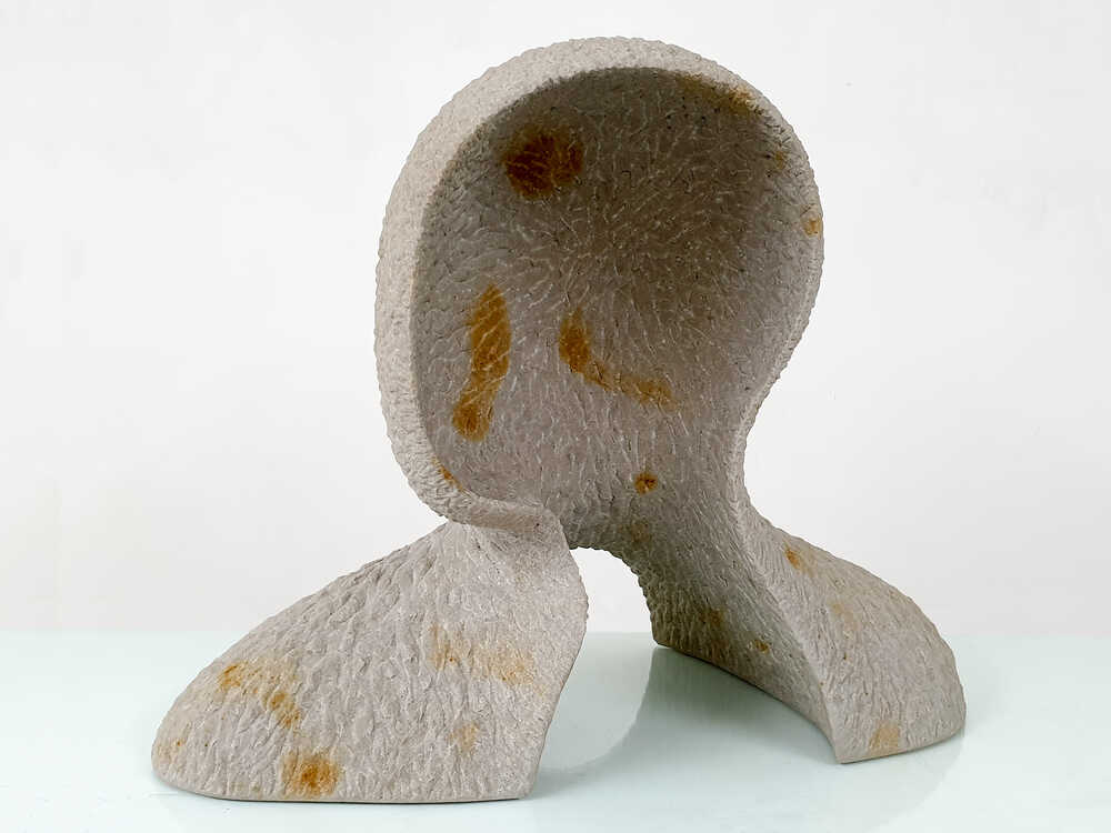 Styx, der Fluss aus der griechischen Mythologie, trennt Ober- und Unterwelt. Als BĂĽste aus Sandstein ist statt eines Gesichtes die Negativform wie die Leerstelle einer weiteren Person zu sehen - Abschied, Ăśbergang, Erinnerung.