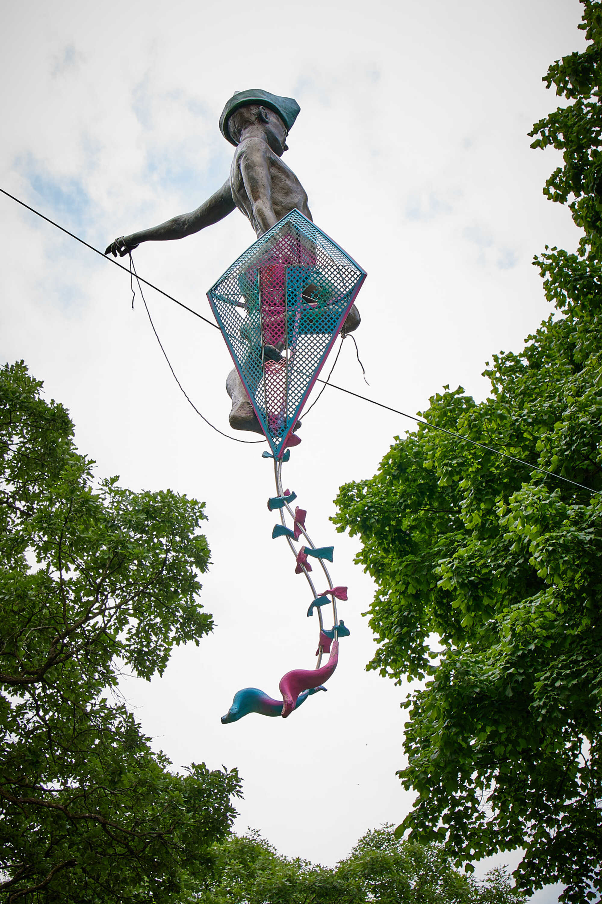 Balancing sculpture, the proprietary synthetic composite, steel, ca. 310x150x67 cm