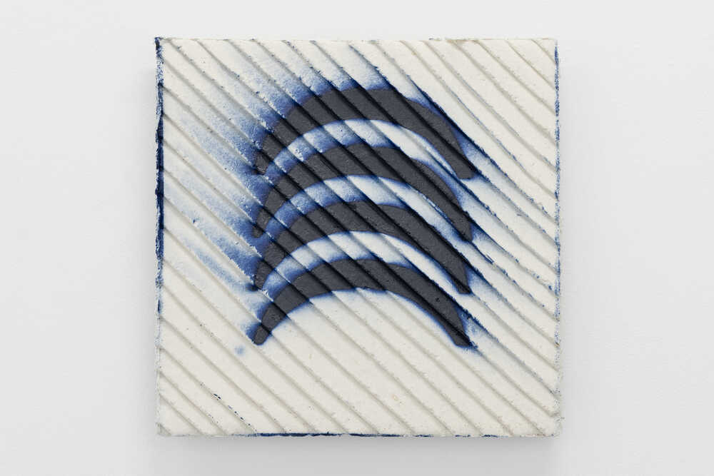Copying, mimesis, repetition is the essence of our culture. Although the West seeks the utopia of the “unique and original” piece, China clings to the mutable and the process of drift, doing so through shanzai: adapting the copied until it becomes something else. Barreiro deconstructs this ontological framework by turning it on its head: the copy, the serial piece, which can be repeated infinitely, becomes a work of art. He takes traffic signs — arrows, triangles, mandatory rings, warning diagonals — and grafts them onto plaques and volumes worked in white paste. Cobalt oxide — the historic colour of Portugal, of tiles and Vista Alegre — appears in gradients that emerge from the relief: spikes, grooves and meshes that capture the pigment.