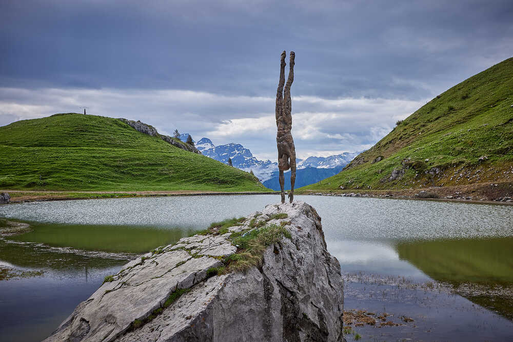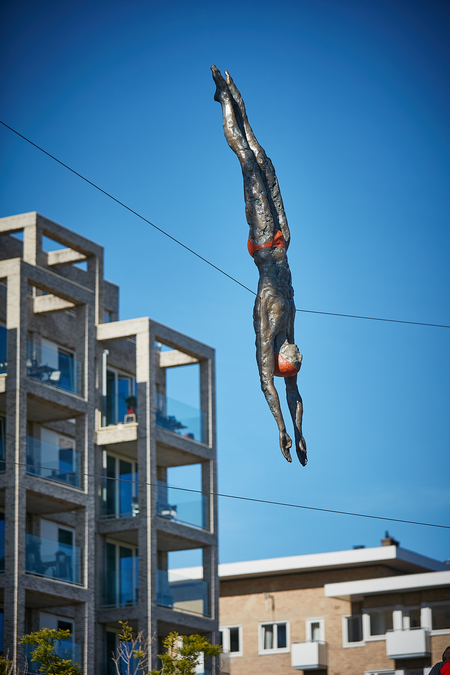 Balancing sculpture, proprietary synthetic composite, steel, ca. 320x50x40 cm