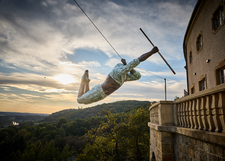 (two versions), balancing sculpture, the proprietary synthetic composite, steel, ca. 180x160x60 cm
