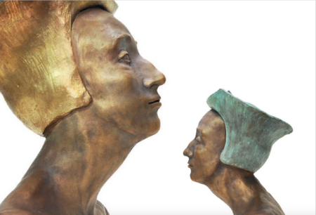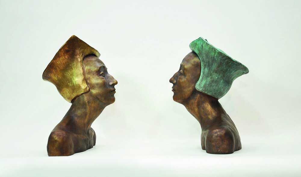 Büste mit Goldhaube / grüner Haube | Bronze