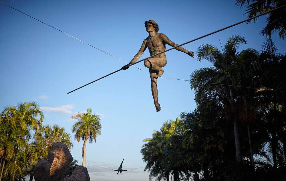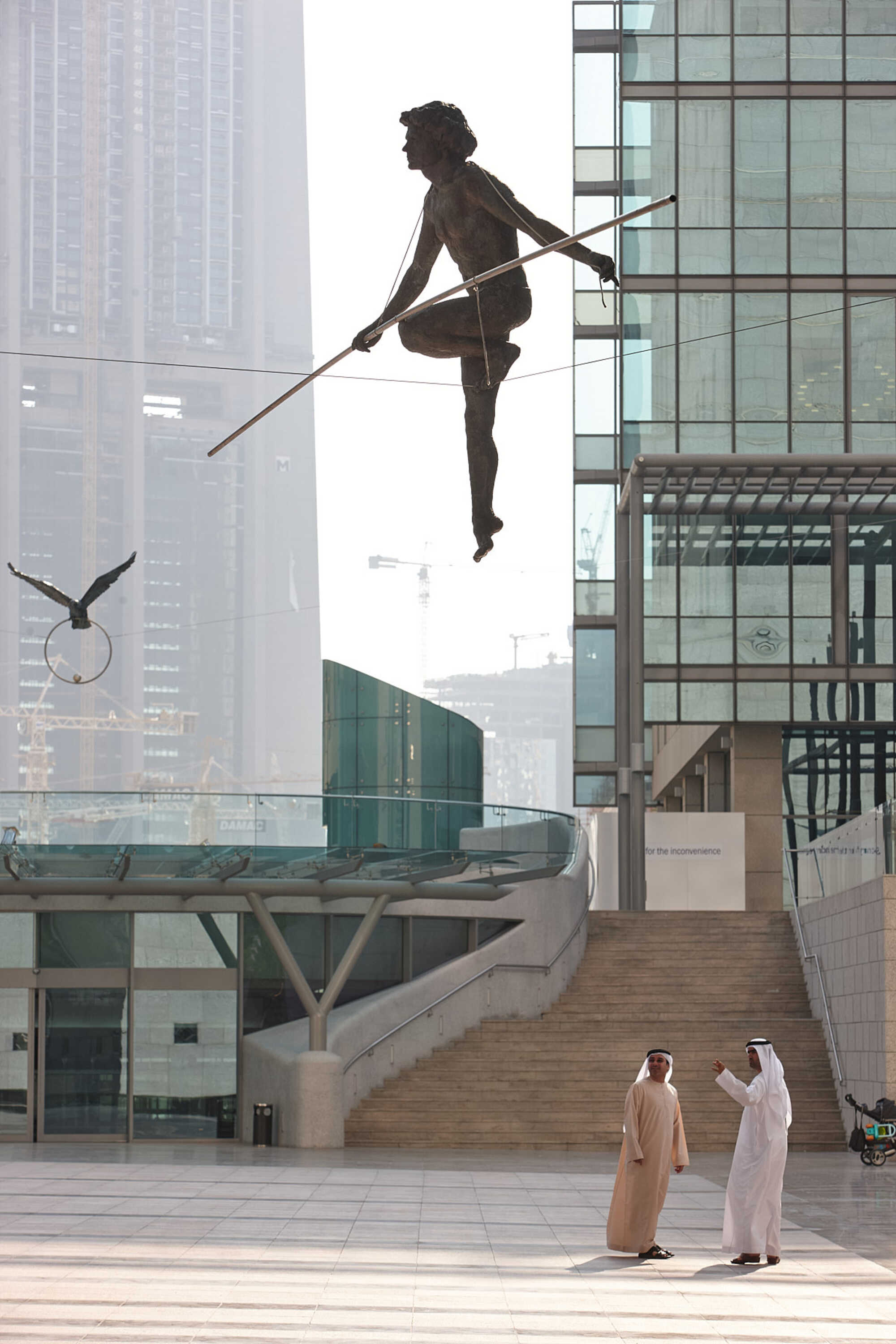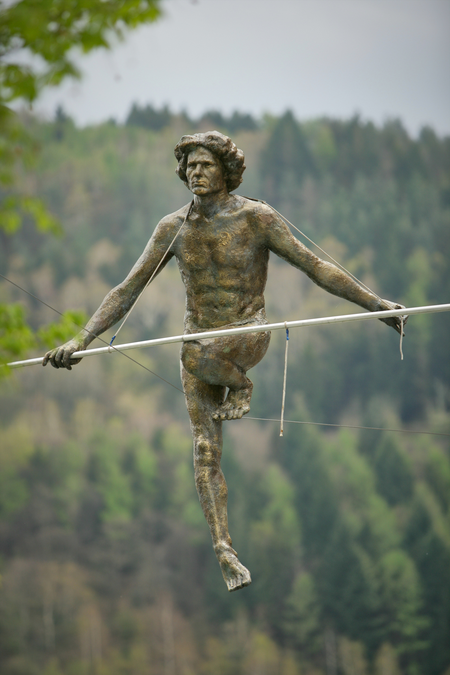 Balancing sculpture, proprietary synthetic composite, aluminium, ca. 225x190x70 cm + pole 6 m