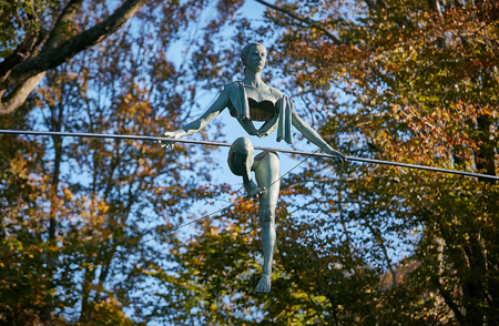 Balancing sculpture, proprietary synthetic composite, aluminium, ca. 210x190x70 cm + pole 2x4 m