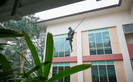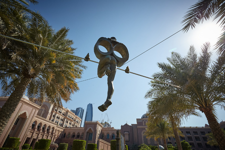 Balancing sculpture, proprietary synthetic composite, aluminium, ca. 225x190x87 cm + pole 6 m