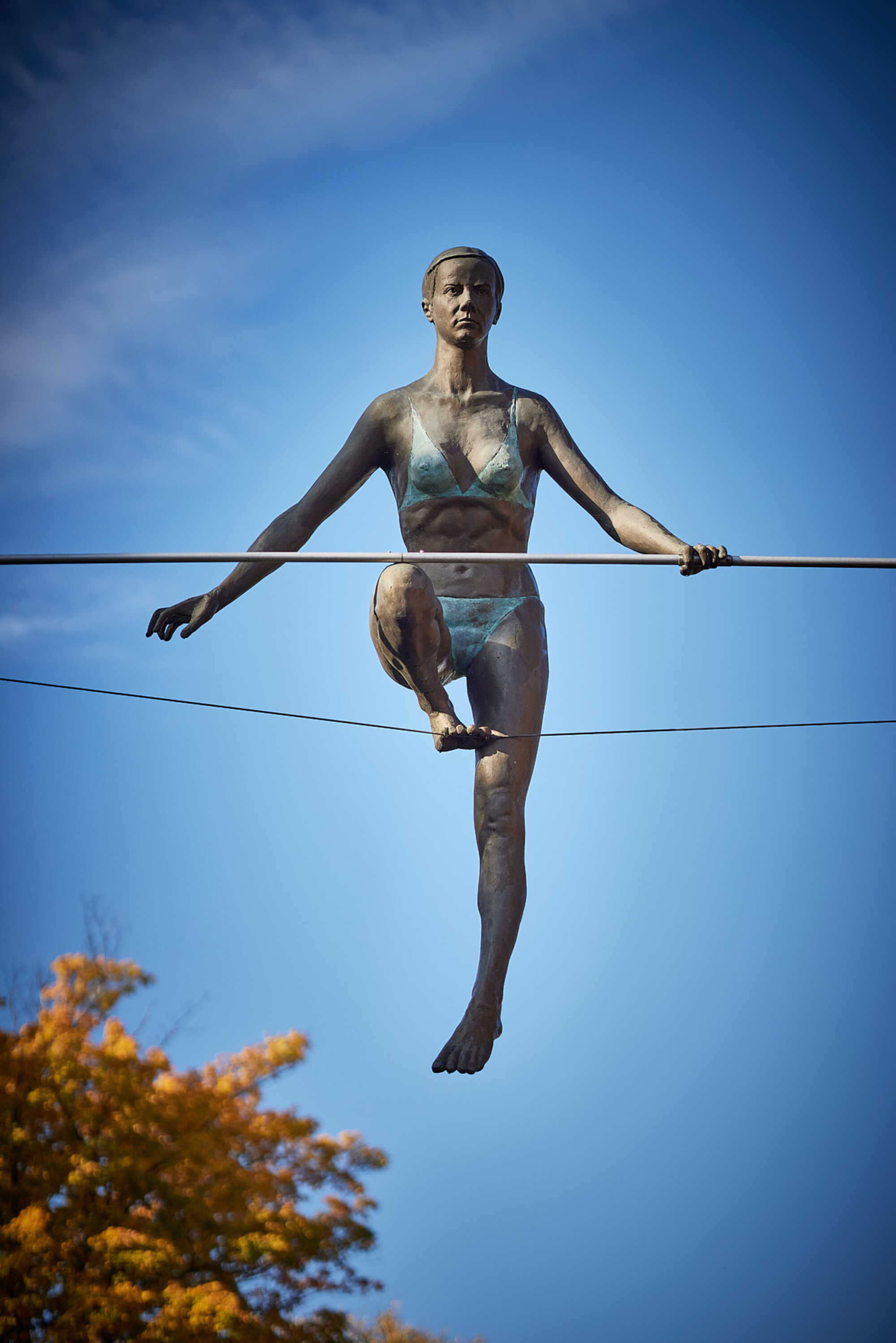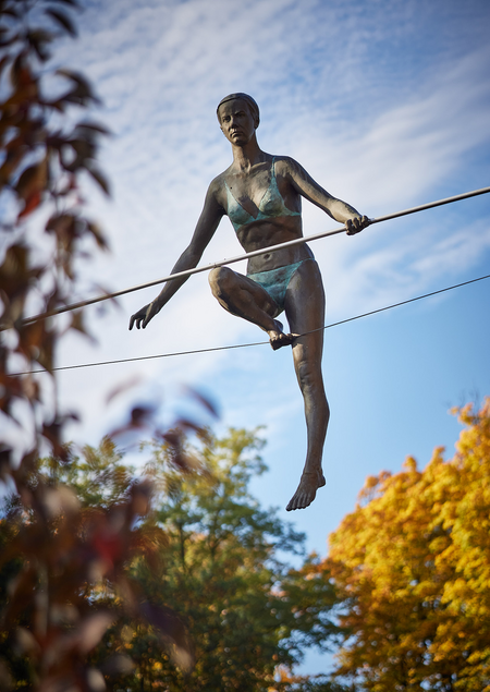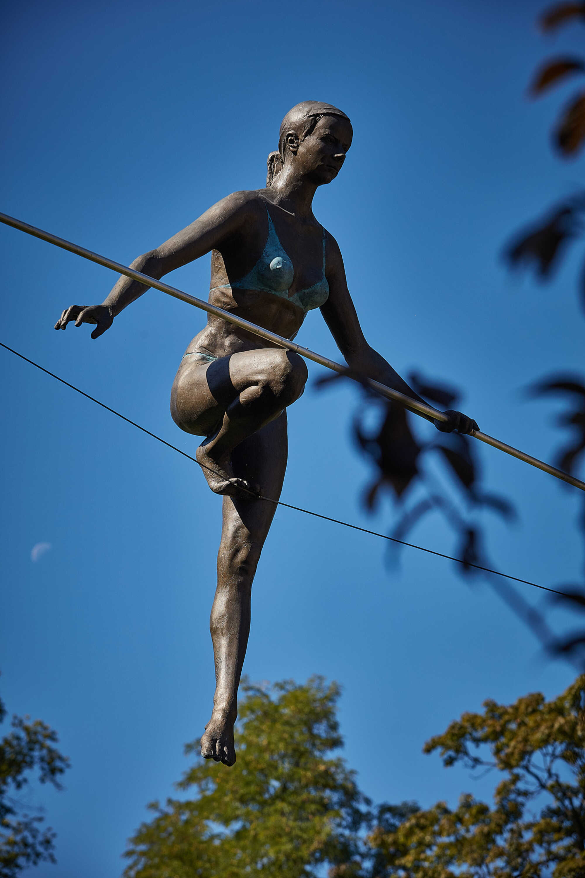 Balancing sculpture, proprietary synthetic composite, aluminium, ca. 210x190x70 cm + pole 2x4 m