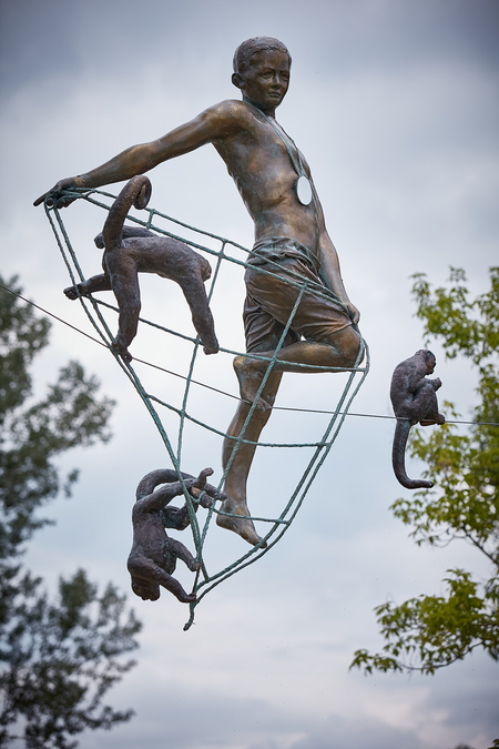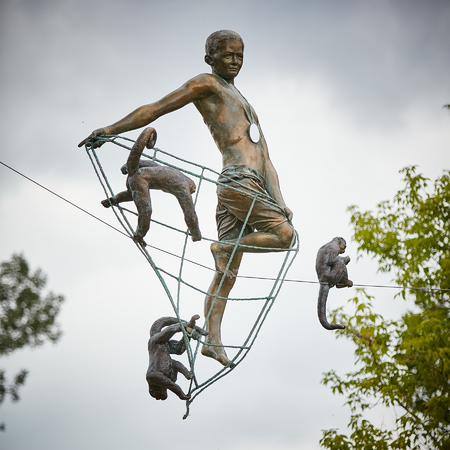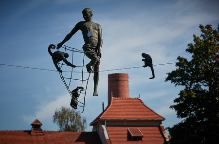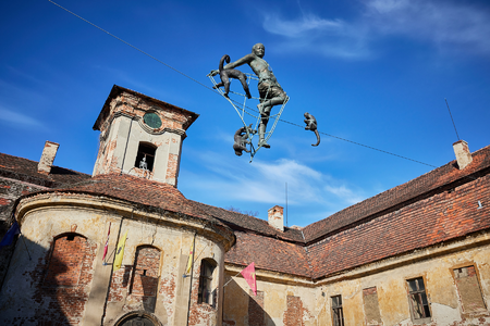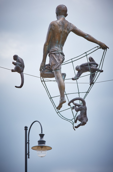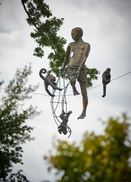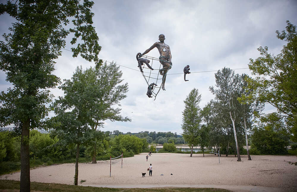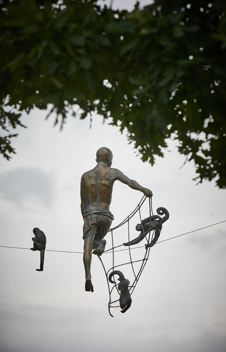Balancing sculpture, the proprietary synthetic composite, steel, ca. 200x130x80 cm + 240 cm