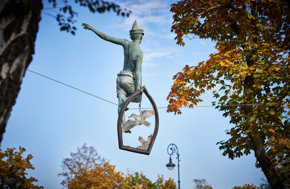 Balancing sculpture, the proprietary synthetic composite, steel, ca. 200x130x80 cm