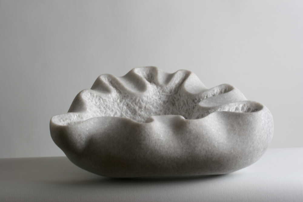 Das „Fluidum“ ist die Fixierung von etwas Flüssigem in festen Stein. Die Darstellung von der maximalen Ausdehnung in einem festen Medium. Die Dynamik erstarrt in der Statik. Die Rundungen, konvex oder konkav, ergeben eine weiche und sanfte Form.