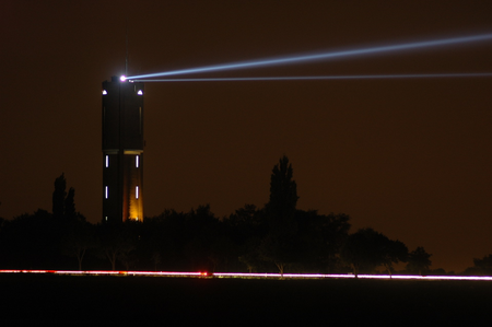 Lichtinstallation zwischen drei Wassertürmen in Wegberg