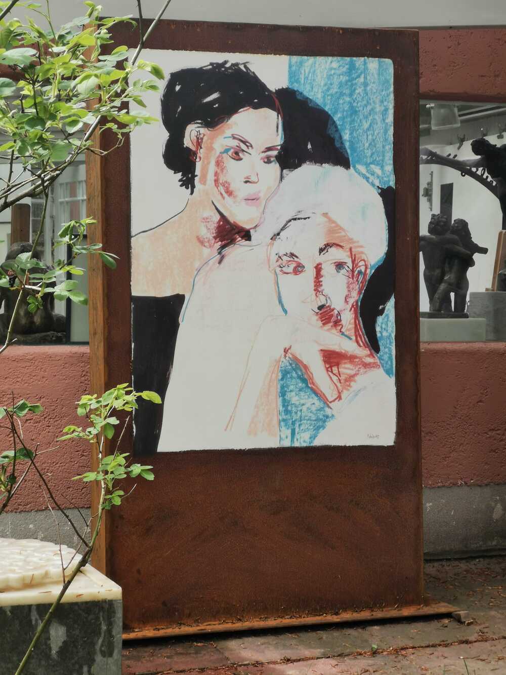 Druck einer Handzeichnung auf Cortenstahl nach einem patentierten Verfahren.