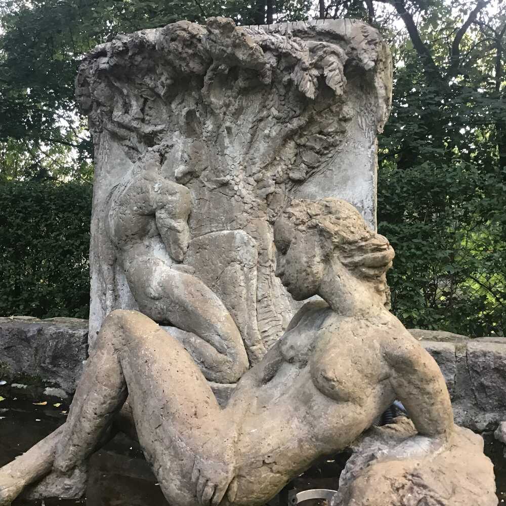 The fountain sculptures were modeled by artist Bärbel Dieckmann and crafted from artificial stone under her team's supervision.