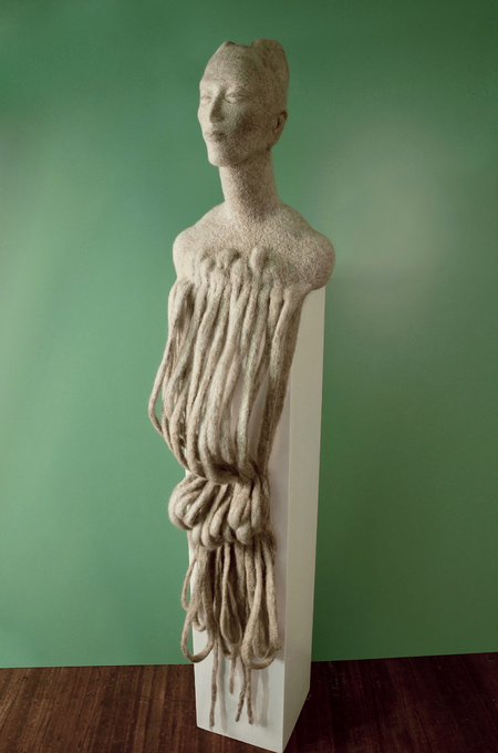 classical bust, extended by an open, movable space (made of felted and sewn ribbons)- describing an inner, spiritual space of sensation