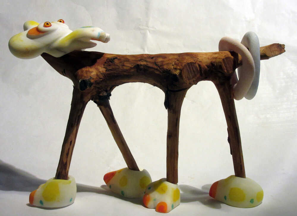 LOOKING BACK Olive wood, Alabaster, paint, glass…