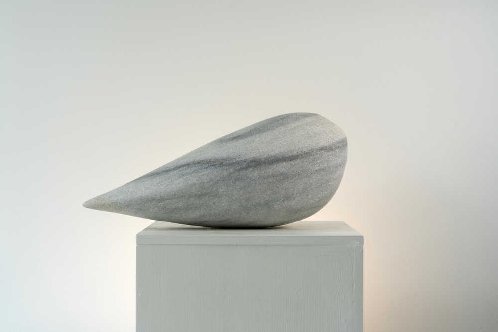 Die Reduktion der Form hebt die fĂĽr die Skulptur ideale Steinmaserung hervor.