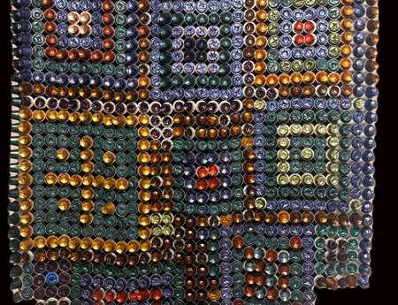Bett mit Klingel, Collage - Gips auf Hartfaser