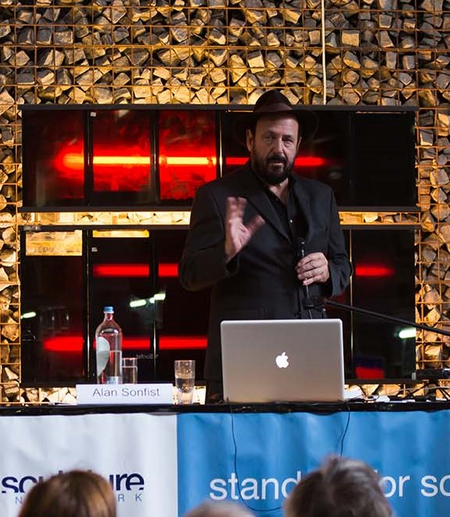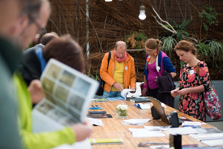 Subsequently, a curated selection of ten artist members of sculpture network talked about their art & nature in 90 second presentations: Iraida Cano (ES), Rainer Fest (DE), Ninette Koning (NL), Catrin Lüthi K (CH), Judith Mann (DE), Rob Olins (UK), Bert Schoeren (NL), Urs-P. Twellmann (CH), Linda Verkaaik (NL) und Lars Waldemar (DK). In the parallel showroom sculptors and institutions presented documentation of their work and projects and exchanged contacts.
