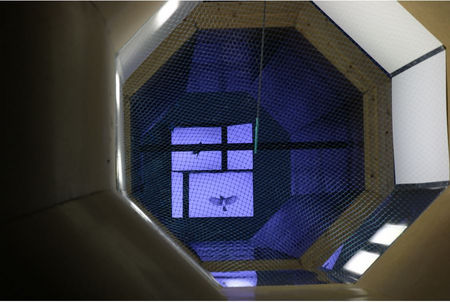 Wind funnel installation at the exhibition "Höhenrausch - Das Geheimnis der Vögel"