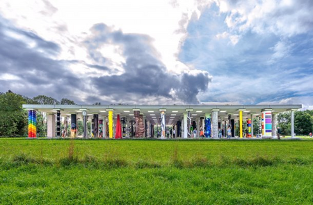 121 selected international artists designed one column each for this unique project, which together support the roof of a hall in the middle of nature.Walk with us to this special place and learn first-hand how the project came about!
