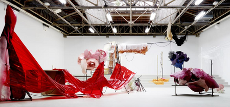 Daiga Grantina has created a vast sculpture from a range of materials with varying qualities: hard and soft, transparent and opaque. Blended together in a strange and colourful landscape, each one of these materials has a role of its own in this organism that is playful, furious, confused, and a little ‘toll’ (the German term meaning ‘mad’ or ‘astounding’ which lends Grantina’s work its title).