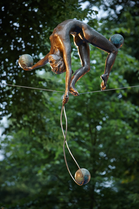 “We are thrilled to welcome this exhibition! I truly believe our visitors will enjoy exploring these interactive sculptures on display throughout our beautiful Gardens,” said Nancy Costopulos, President and CEO of Old Westbury Gardens. “Jerzy’s artwork is magnificent and leaves spectators in awe as the sculptures remarkably balance from up above. As you look at this kinetic art of tightrope walkers and athletes installed outdoors, these sculptures transform to take on a life of their own in nature.”Â