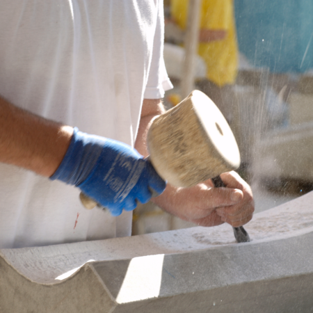 Die erste Begegnung mit dem Stein, dem Marmor, ist eine grossartige Erfahrung! In diesem Kurs lassen wir Ihnen viel Raum für Ihre Gestaltungsvorstellungen und vermitteln schrittweise den Umgang mit dem Material, den Werkzeugen und verschiedenen Techniken. Die Freude beim Bearbeiten stellt sich schnell ein, nachdem das Handling und die Reaktion des Marmors begriffen sind und immer vertrauter werden. Der urtümliche Klang von Hammer und Meissel tönt über den Werkplatz: Ein Dialog entsteht. Am Ende der zwei Wochen präsentieren sich eigenständige Formen, Skulpturen, Objekte, so individuell wie ihre Schöpfer.