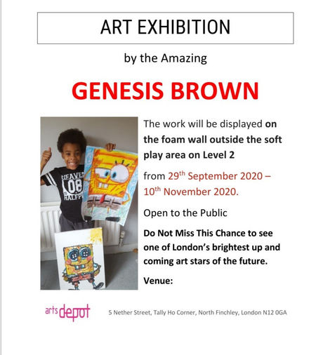 Lock down art, the artists got to work. One of the particiapants Genesis Brown, age 8 who has Autisum has created his 1st love,also can be seen on Arts depot website