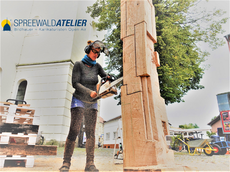 Der zentral gelegene Werkplatz zwischen Kirche, Rathaus und Altstadtgeschäftigkeit mit Schauspiel, Livemusik machen das SPREEWALDATELIER 2021 komplett. Der Duft nach Holz, Terpentin und Acryl, überall Späne, kreischende Kettensägen, das dumpfe Klopfen der Beitel und farbenfrohe Skizzen ergänzen das Erlebnis für alle Sinne!